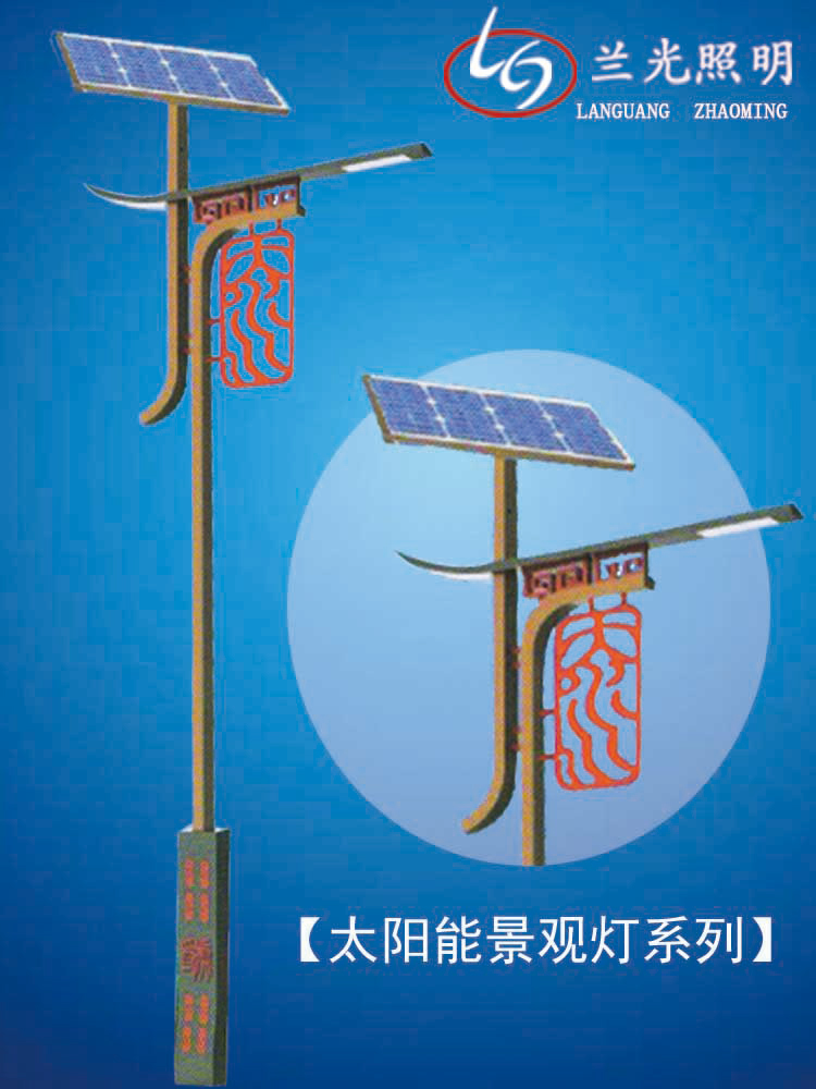 簡介—— 蘭光照明太陽能景觀燈是城市園林景區(qū)、文化休閑娛樂廣場及大型社會活動場所普遍使用卻必不可少的裝飾光源配置形式。是裝飾型照明燈飾產(chǎn)品,燈桿材質(zhì)多樣,光源運用靈活多變,聲、光、電三位一體,結(jié)構(gòu)形式千姿百態(tài),是美化,亮化,綠化有機結(jié)合,光與影,燈與藝術(shù)的完美結(jié)晶。