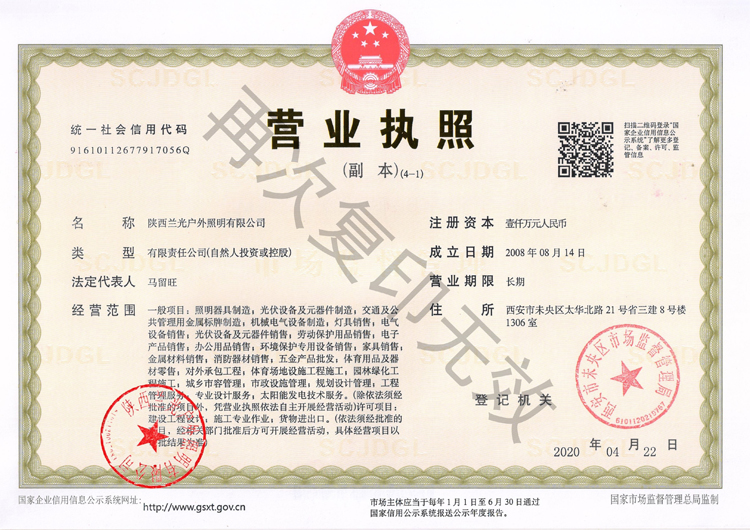 陜西蘭光戶外照明有限公司 營業(yè)執(zhí)照